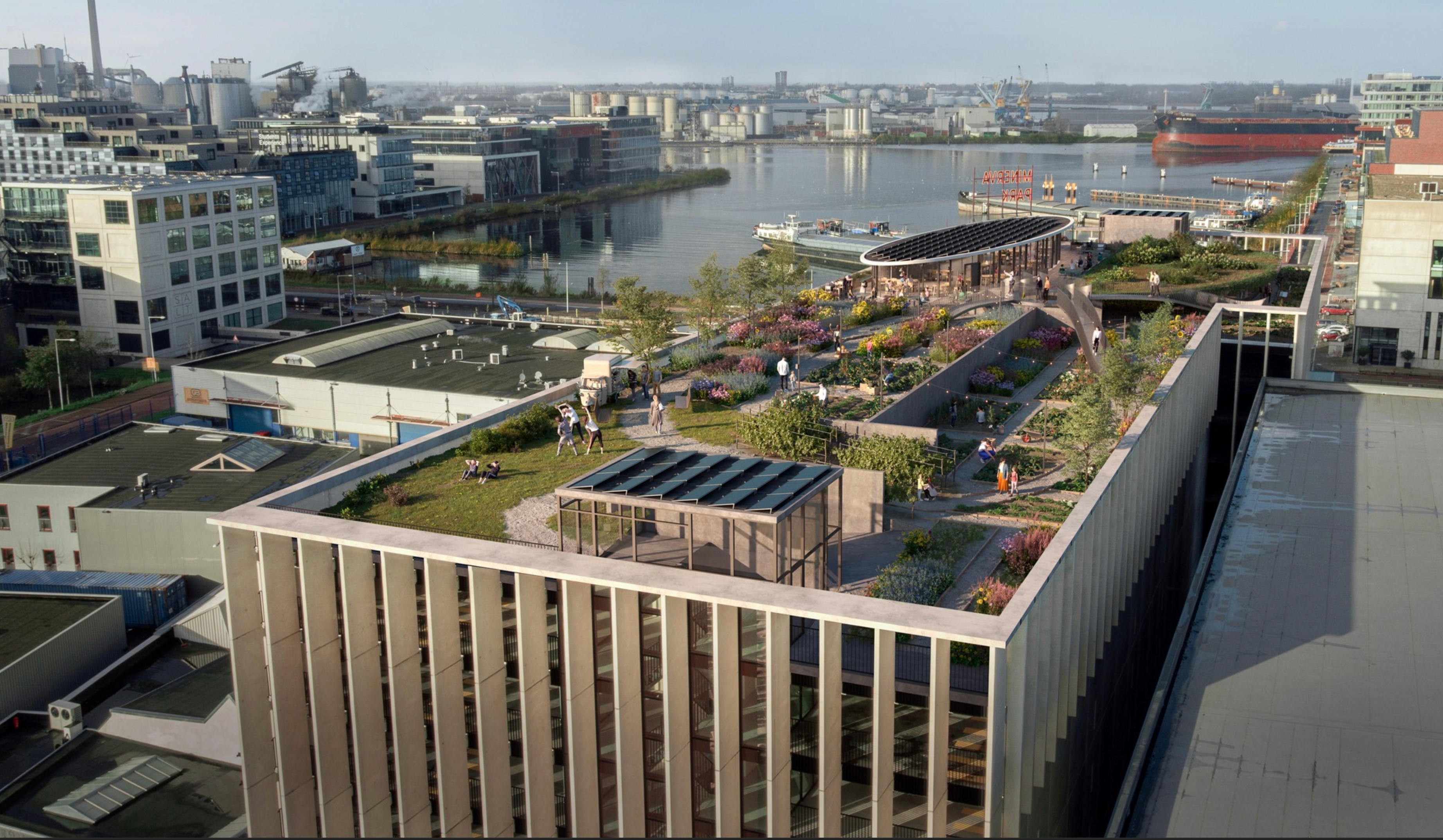 Voorstel voor een placemaking Michelinster restaurant met eigen moestuin op een parkeer garage aan 't IJ in opdracht van Heren2 en PVH.