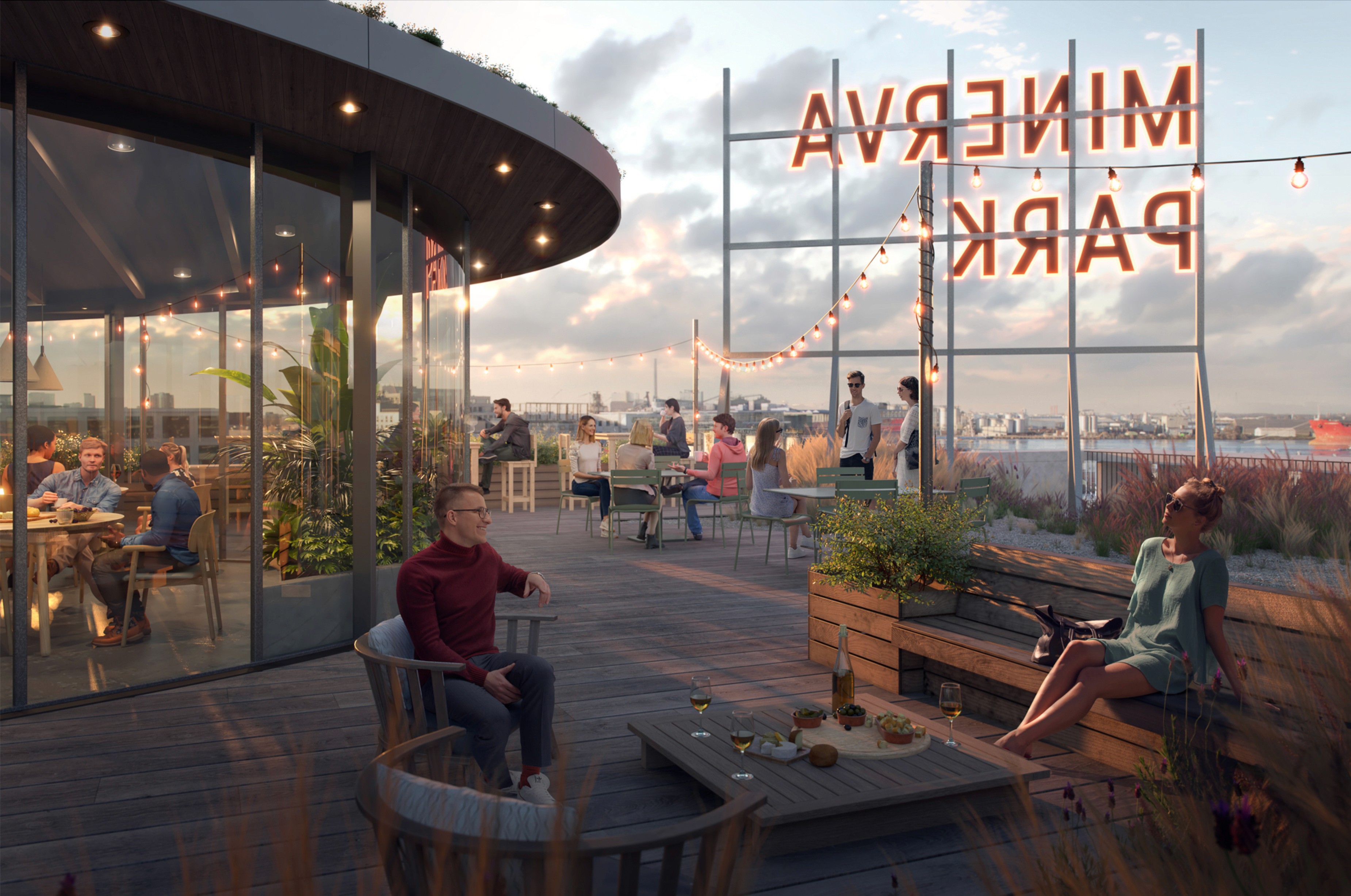 Op de kroon van de Minerva parkeergarage ontvouwt zich een groene oase. Een bruisende, openbare daktuin met een mixed-use bestemming: recreëren, verbinden en ontspannen. Verzachting en vergroening kruisen elkaar, bij deze ontsnapping aan een bewogen metropool. Compleet met stadspark, urban farm, restaurant en kiosk valt hier altijd wat te beleven én te proeven. Ontladen is hier het credo, voor de stedeling en verkenner, die snakt naar inspiratie en cultuur.