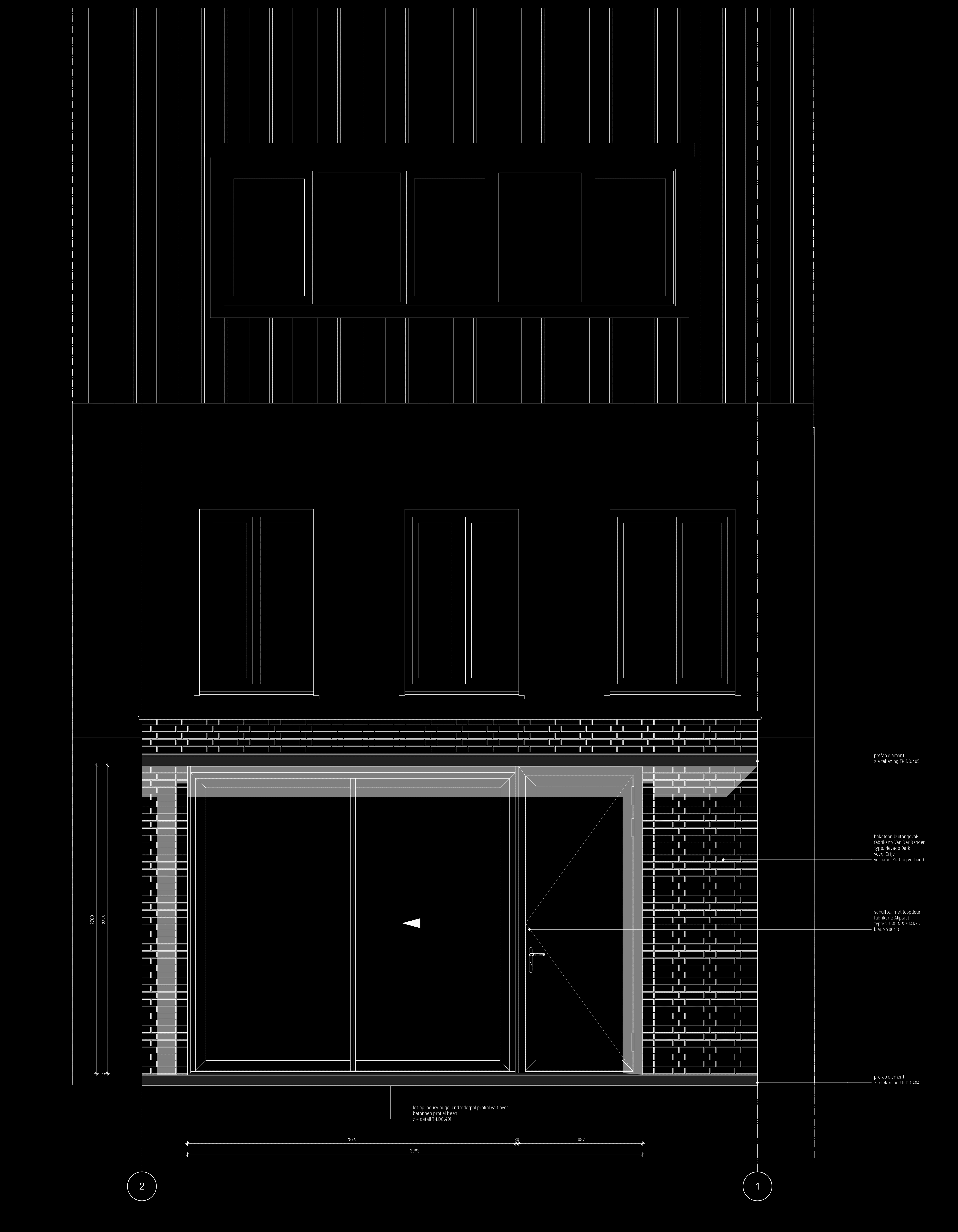 De aanbouw met luifel is zo ontworpen dat de zon niet geheel de woning inkomt. De metselwerk "zijbeuken" zorgen voor verbinding met de tuin en verminderen het zicht richting de omgeving. Op deze manier ontstaat er van binnenuit een rustiger beeld.