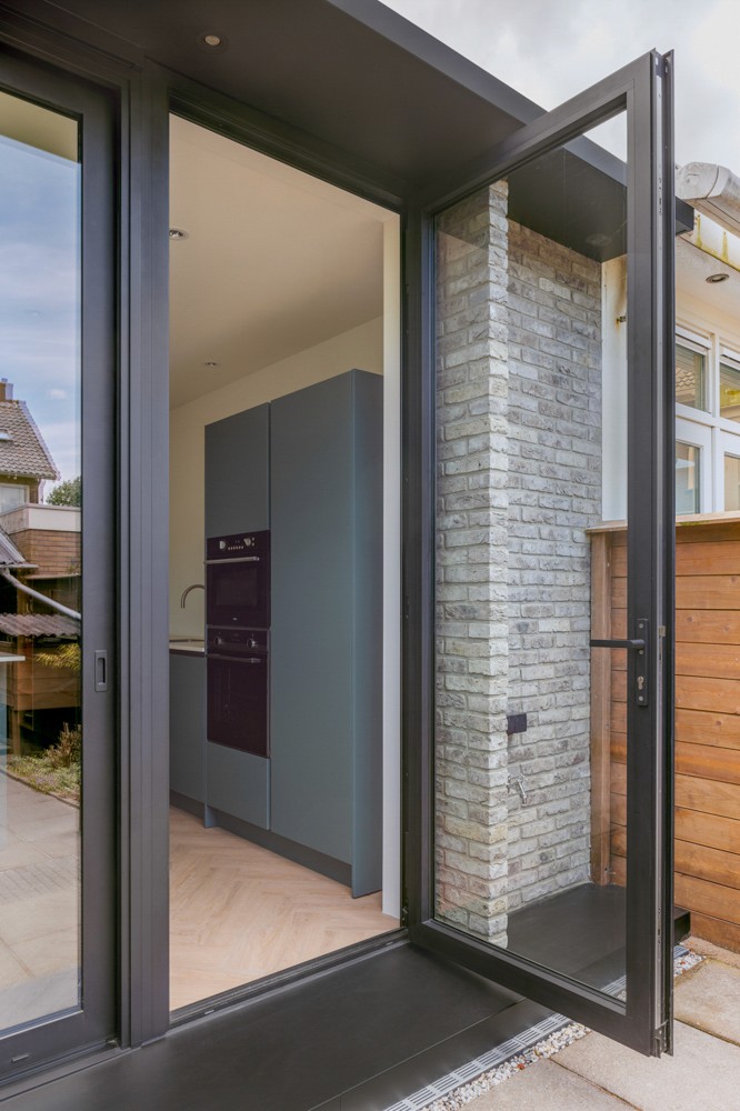 Van binnenuit is de wijze van hoe je de woning betreed aangepast. Vanuit de gang kom je nu in de keuken de woning binnen. Door deze aanpassing is de woonkamer vergroot, en is de routing logisch geworden.